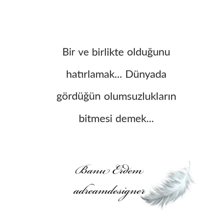 Kendi içimizdeki ayrılıkları, kırgınlıkları, yargıları dönüştürmeye başladığımızda; bu dönüşüm çevremize de yansımaya başlar. Çünkü gerçek değişim, içten dışa doğru olur. Ve belki de dünya üzerindeki en derin dönüşüm, “ben”den “biz”e geçişle başlar.Bir ve birlikte olduğumuzu hatırladığımızda, artık başkasının acısı bizim de acımız olur. Yeryüzünün çığlığı kulaklarımıza gelir. Sevgi, sadece bir duygu değil, bir yaşam biçimi olur. Ve işte o zaman, dünyadaki olumsuzluklar sönmeye başlar. Çünkü hatırlamak, uyanmaktır. Uyanmak ise barıştır, şifadır, şifa ise sevgidir…